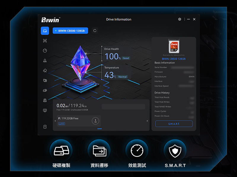 Biwin Intelligence是一款多功能硬碟管理軟體,適用於需要管理Biwin儲存產品的用戶,透過該軟體,用戶可輕鬆執行效能測試、資料遷移、韌體更新等功能,享受便捷安全的儲存管理體驗。
