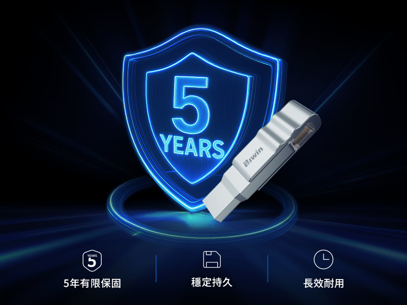 Biwin UD150 提供5年有限保固,可靠品質,長久耐用。透過嚴謹的製造工藝與精密設計,確保每項產品均符合高效能標準。提供穩定的資料傳輸與安全的儲存保護,重要檔案隨時存取,值得信賴。